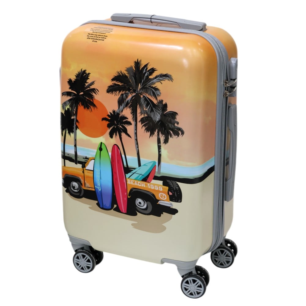 Travel suitcase made of ABS plastic, a durable and strong material, designed to withstand longer trips and various travel conditions. With fresh summer motifs, this suitcase brings a warm and relaxing atmosphere, giving a tropical and energetic touch to every trip. The sufficient capacity offers ample space for clothes and other necessary items for vacations or short trips. It is equipped with wheels for easy movement and a strong handle for safe transportation. The special design with summer motifs will attract attention and make your trips more joyful and stylish.