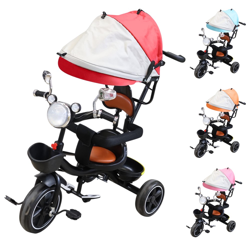 Made of quality materials and resistant to shocks during the game. Designed with three wheels, armrest and soft bench, for more safety when pedaling. The element of the canopy and the element of steering from the parents, makes this tricycle suitable even for the younger ages. The light bulbs and the ringtone make the game fascinating and at the same time very entertaining. Easily transported by machine disassembled body elements.