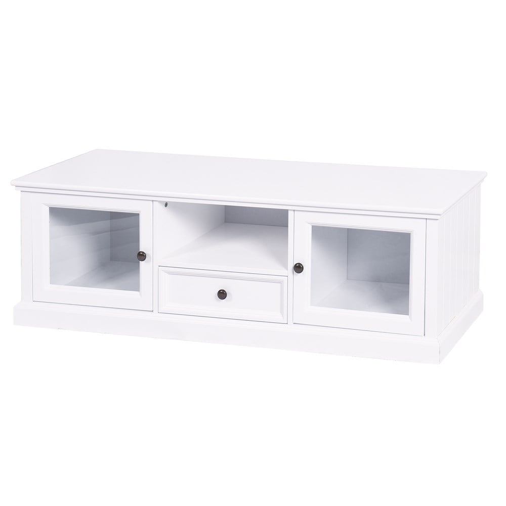 TV cabinet, MDF and glass, white, 140x40xH45 cm