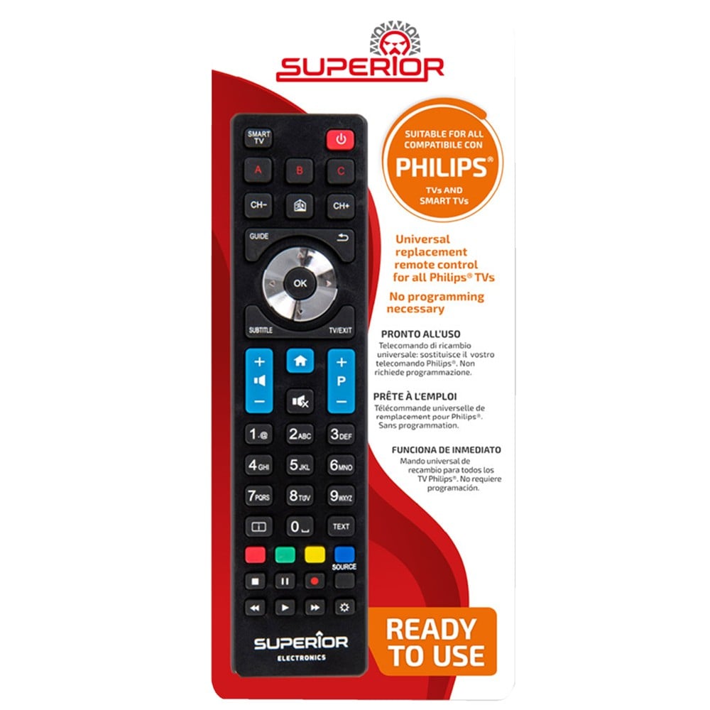 The universal remote control for Philips TVs. Universal remote control for Philips TVs built since 2000. Just insert batteries and is ready to use: does not require any programming. All Smart TV and 3D main functions.