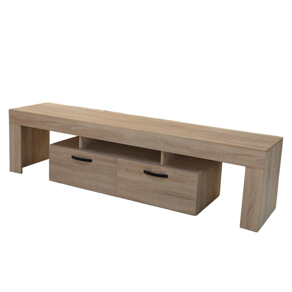 TV furniture is an excellent choice to bring a touch of modernity and elegance to your environment. With a refined and sophisticated design, this product offers a convenient solution to hold your TV. Crafted from high-quality melamine in sonoma color, this piece of furniture offers durability and a modern look. The furniture is the perfect choice for those looking for a TV stand to meet the needs of their living or office space.