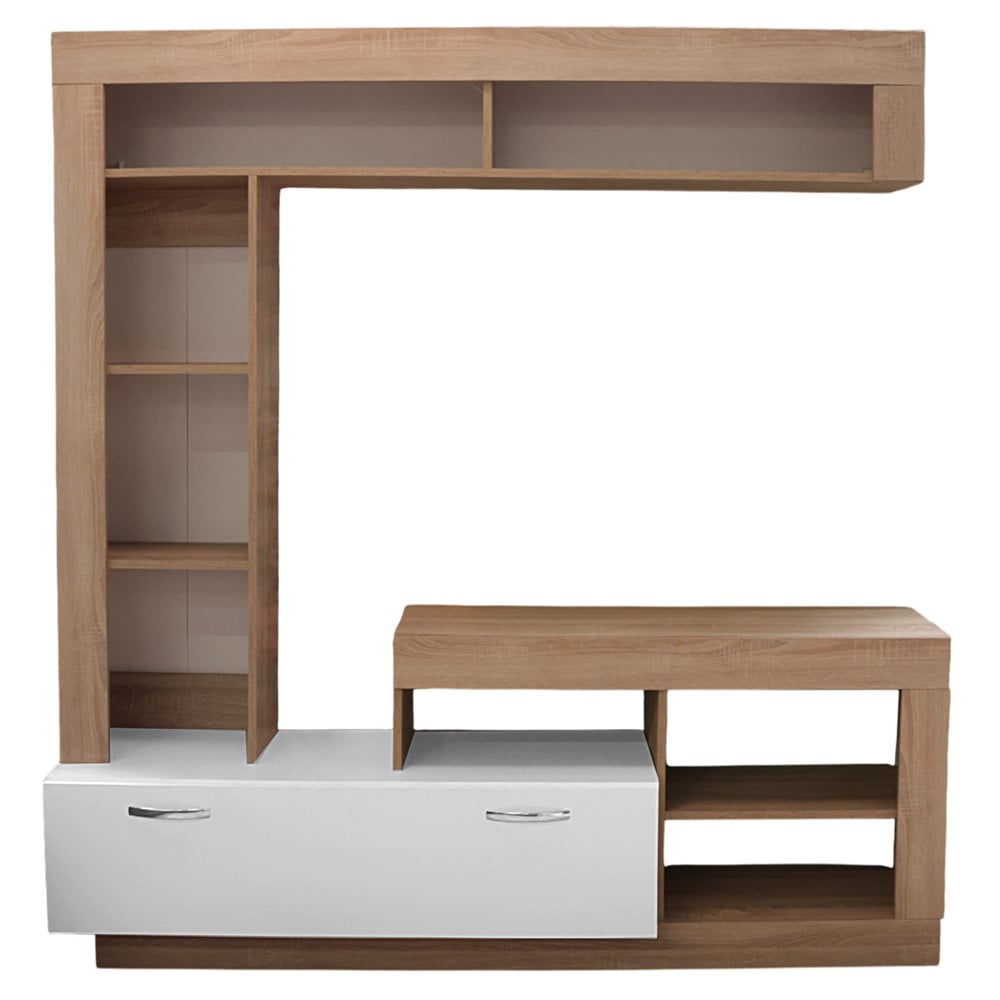 TV furniture is an excellent choice to bring a touch of modernity and elegance to your environment. With a refined and sophisticated design, this product offers a convenient solution to hold your TV. Crafted from high-quality melamine in sonoma and white color, this piece of furniture offers durability and a modern look. The furniture is the perfect choice for those looking for a TV stand to meet the needs of their living or office space.