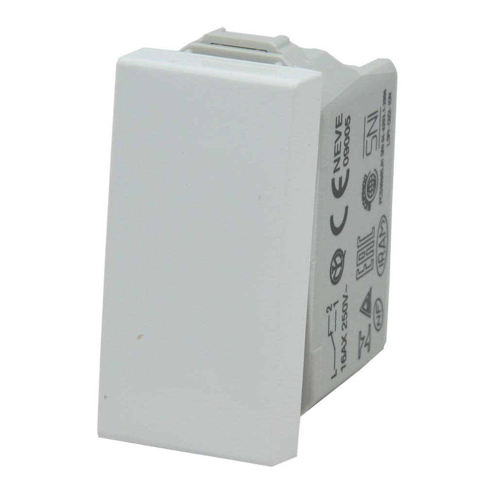 This Vimar switch is a high quality product. It can be used to command various devices (appliances or lighting). This switch is been produced to work in network voltage (220V) and 16A amperage. The white color can be easily combined with every cover color.
