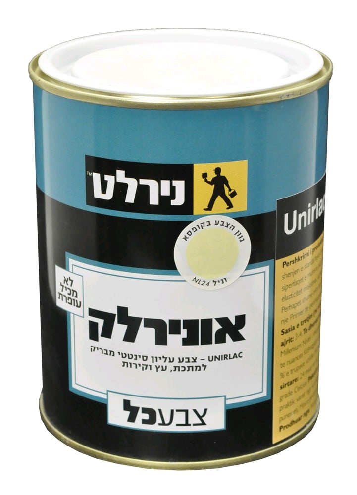 Oil paint Unirlaque 750 ml Vanile color. A high quality enamel paint that can be applied on every wooden and metal surface, intended for both, interior and exterior use. Glossy topcoat based on selected synthetic resins. Bears Israel Standards Mark 765. Intended for painting metal, wood and walls after suitable preparation and application of primer. Special Features: High gloss, maximal flexibility,high durability under exterior conditions, doesn’t contain lead, spreads very well when applied by brush, intended for decorative painting on top of a suitable primer. Thinner: Dilution quantity (by volume) up to Brush 5%, rolle 5%, sprayer 20%. Shades In RAL shades or according to the Nirlat Millennium color fan. Gloss High, Theoretical coverage (m2/l) Approximately 12, depending on shade. Dry to touch 2-3 hours Dry to recoat 24 hours.