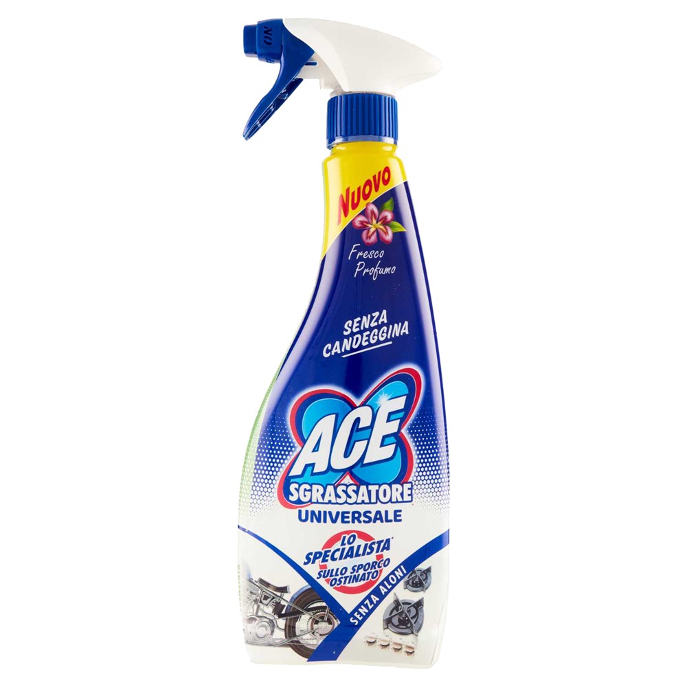 Ace universal detergent removes hard dirt on various surfaces. It easily cleans the surfaces of the house, is easy to wash and does not leave streaks. After each wash it spreads a fresh floral scent. Spray the surface and let it act for a few minutes, then wash it off with a towel. It is not recommended to be used on metal surfaces, stone, painted surfaces, plastic, silk.