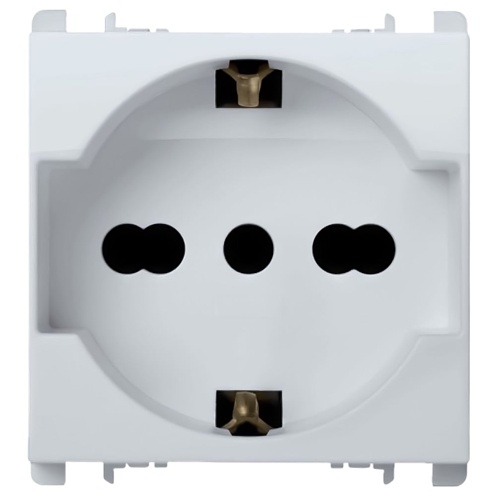 Universal Schuko socket, 2-pole with grounding (2P+T), 16A, white color, Simon Urmet brand. Suitable for European and international standard plugs. Offers high safety and adaptability for use in domestic or official environments. Modern and functional design.