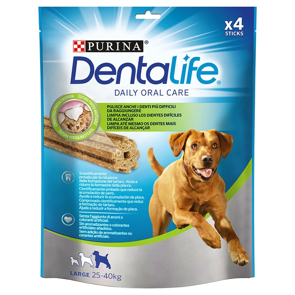Your dog has specific health needs. Maintaining good dental hygiene contributes to his overall well-being. That is why Purina® experts have developed Purina® DentaLife®, an innovative dental snack that has been scientifically proven to help clean even of the dog's posterior teeth., which are more sensitive to the formation of plaque and stones.There are no artificial scents or additional colors.