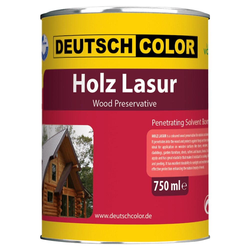 HOLZ LASUR is a coloured wood preservative for exterior and interior use. It penetrates into the wood and protects against fungi and blue stains. It is ideal for application on wooden surfaces like doors, windows, frames, claddings, garden furniture, sheds, rafters and beams, fences. It is easy to apply and has great elasticity that makes it resistant to cracking, blistering and peeling. It has excellent durability to sunlight and moisture and offers effective protection enhancing the natural beauty of wood. Surface preparation-Application: Surfaces must be clean and dry and rubbed down with a suitable abrasive paper. It is ready for use. Apply 1 to 2 coats of HOLZ LASUR. The final color of the wood depends on the natural color and absorption of wood and the number of coats applied.