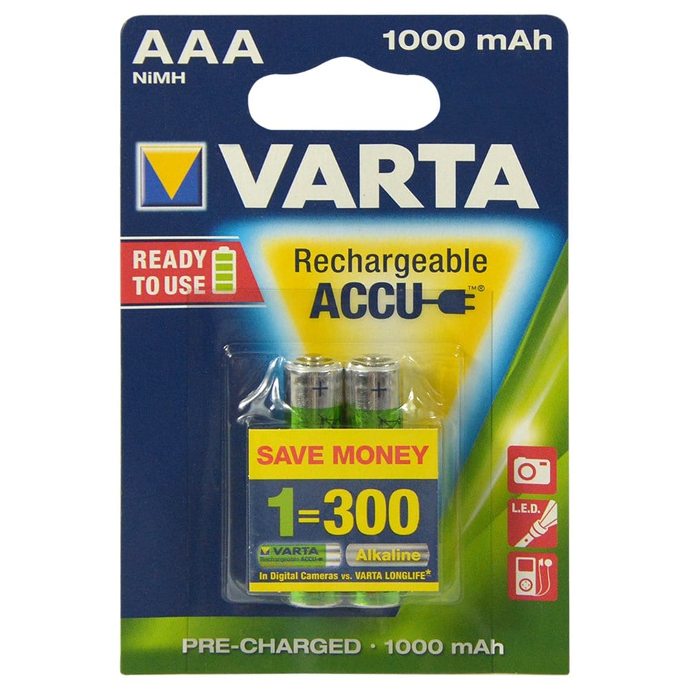 Varta NiMH 1000mAh Rechargeable AAA Batteries are a reliable and economical source of electricity for conventional battery-powered devices, eg. remote controls, clocks, lamps, toys and calculators.