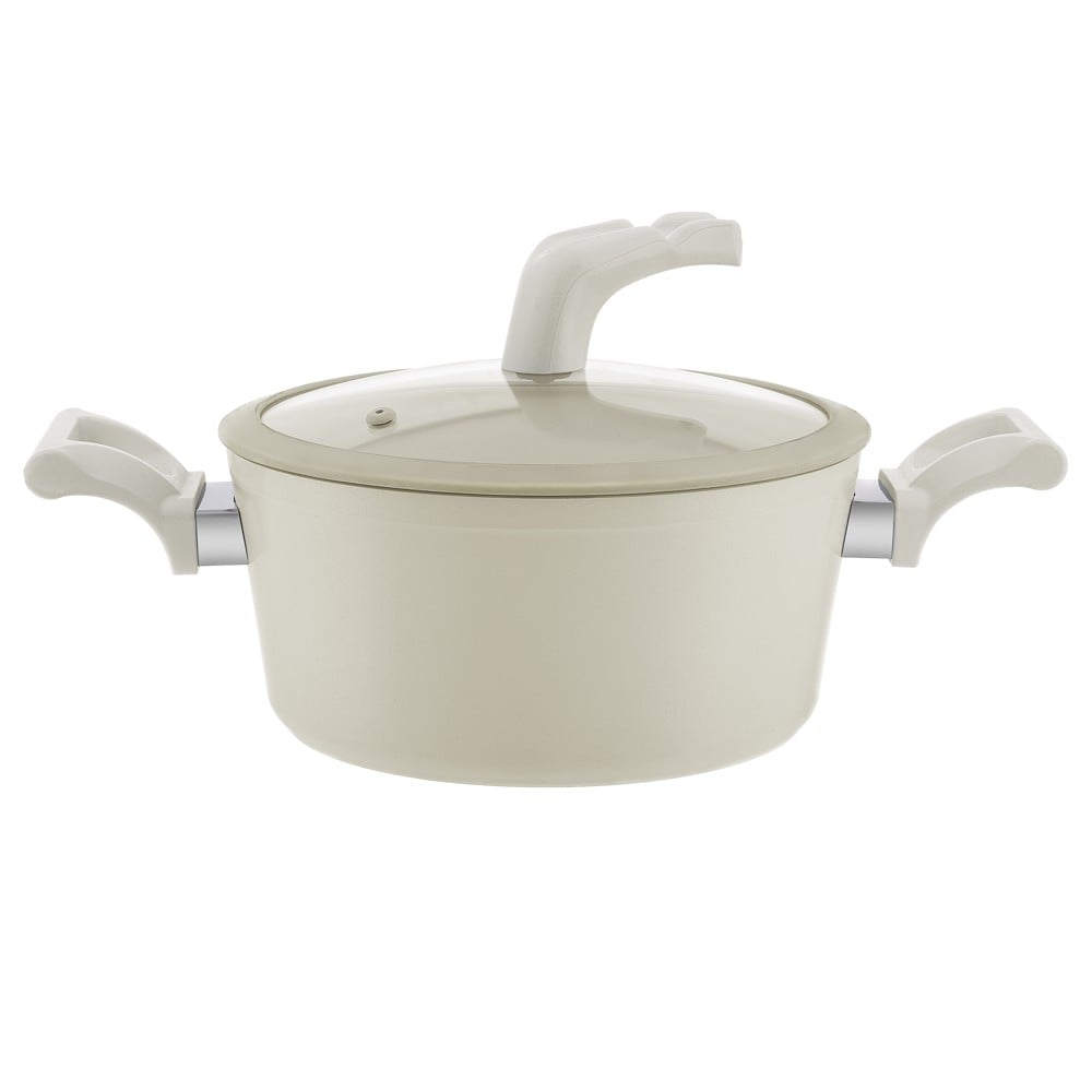 Vega nduction pot with glass lid and ceramic non-stick coating, aluminum, cream, 4.35L / Dia. 24 x H 11 cm
