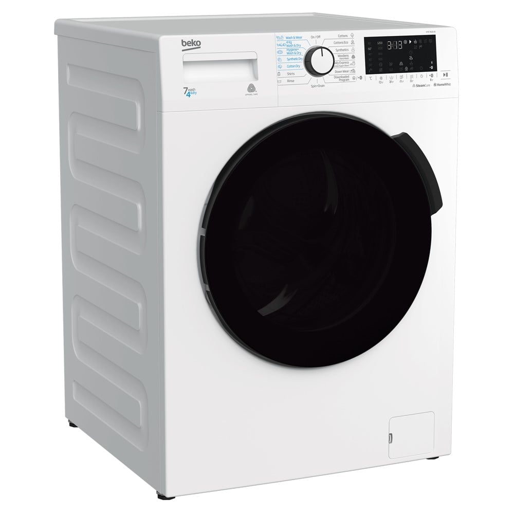 The Beko HTE7616X0 washing and drying machine with a washing capacity of 7 kg and drying of 4 kg of laundry has extremely useful washing and drying programs and impresses with its useful new technologies. The ProSmart inverter motr enables quieter, more efficient and durable operation, and the washer-dryer is classified in energy class B. The washer-dryer has the latest SteamCure steam technology, which helps to remove stains and wrinkles on clothes. The 4 kg Wash & Dry program allows you to automatically wash and dry 4 kg of laundry, so you can only put it in the cupboard after washing. With the Wash & Ware program, you can wash and dry 1 kg of laundry (5 T-shirts) in one hour. The Hygiene + Wash & Dry program can wash and dry laundry according to hygiene standards even at low temperatures. You will also find the quick Mini program - washing in 14 minutes or any of the programs that you download via the application. The machine provides Bluetooth connectivity, with which you connect the machine to your smart device and use one of the downloaded washing programs such as a mixed laundry program, sportswear, dark laundry / jeans, towels and delicate laundry via the HomeWhiz application. The DrumClean + drum self-cleaning program will take care of a hygienically clean drum and always fresh clothes. You can further shorten programs with the Fast + function.