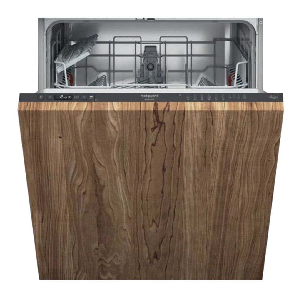 This Hotpoint built-in dishwasher features: standard size dishwasher with capacity for a large number of sets. Exceptionally low water consumption. Black colour. Adjustable feet for perfect stability on uneven surfaces and floors. Load up to 14 sets of dishes into the machine. Maximizes the effectiveness of detergent tablets. The stainless steel interior of the Hotpoint dishwasher ensures spotless dishes and a clean interior. The second adjustable basket can be moved up or down to create additional space for taller or wider items. With energy efficiency class E, this appliance delivers high performance while working in an environmentally friendly manner. Leak prevention and containment system that automatically closes the water inlet and activates the drain pump if a possible leak is detected. A program dedicated to very dirty dishes with food residue. Especially suitable for pots and pans. The start of the program can be delayed from 30 minutes to 24 hours, allowing you to start a washing program at any time of the day, even when you are away from home. The unique Flexiload system offers complete flexibility in how you load your dishes into the machine. The configuration of the movable or removable parts of the baskets has been designed to maximise interior space and facilitate correct loading of your machine, for impeccable results every time. Option that can be selected to wash small loads. Allows you to save water, electricity or time, depending on the program selected. Thanks to its ability to vary the spin speed, it can precisely calibrate water pressure and cleaning power, combined with optimized electronic control. The magnets allow precise control of the sprinklers, directing water with the ideal pressure to the right place at the right time. Hot Water Connection. This Dishwasher allows direct connection to a hot water pipe (maximum 60º).