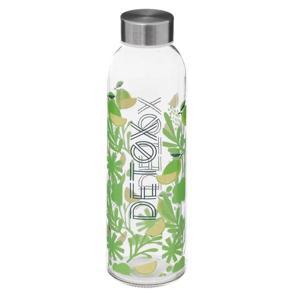 Water bottle with airtight lid, glass/stainless steel, green, 6.5xH22.5 / 0.5L
