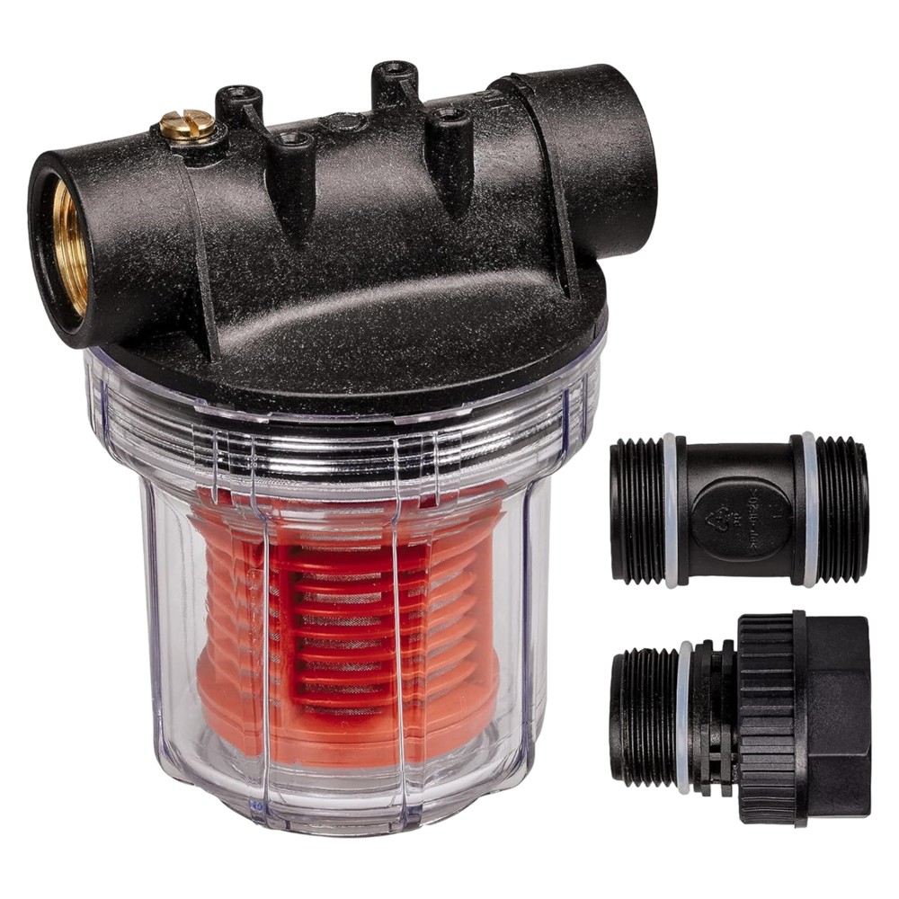 Suitable product for the protection of water-working machines (water pumps, washing pumps, programmers, sprayers, etc.) from dirt and sand residues. Filtering is performed by a mesh network, which can be easily cleaned.