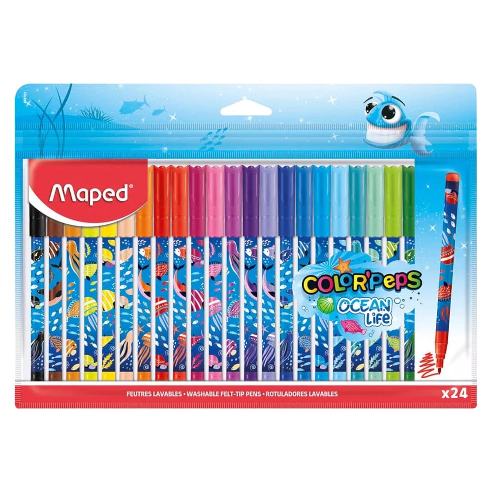Maped Watercolors, Decorated Ocean. This set contains 24 different colors, which offer endless possibilities for creating beautiful and diverse paintings. Each paint is designed to be easy to use, with high quality that guarantees pure and lasting colors.