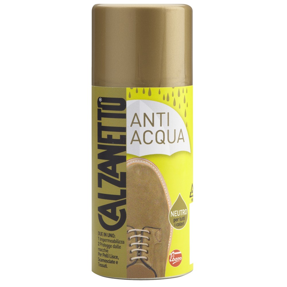 Waterproofing spray for shoes, bag and other objects in suede, leather, fabric. Protects the treated surface from any stains.
