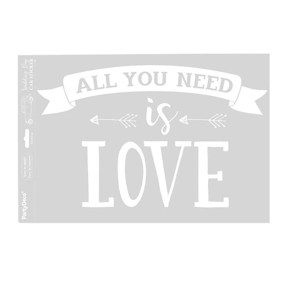Wedding day car sticker, "All you need is love', 33x45 cm, white