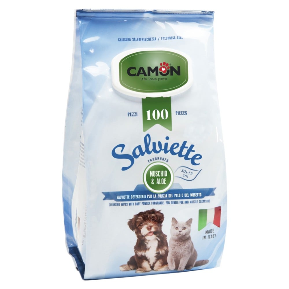 Wet wipes for animals, Camon, 100 pieces, 17x30 cm, with aloe vera
