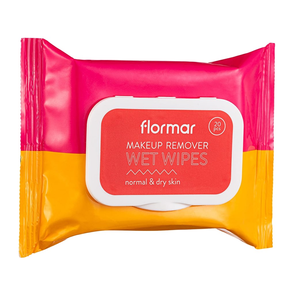 Wet wipes for removing makeup, Flormar, fiber, 15x10 cm, orange, 20 pieces