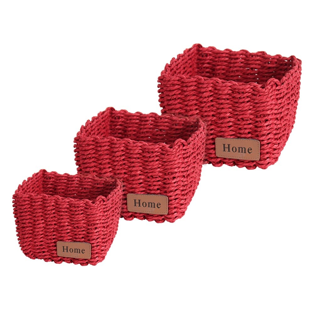 Wicker box set of 3 pieces, paper, red, 17x17xH11 cm; 14x14xH10 cm; 11x11xH9 cm