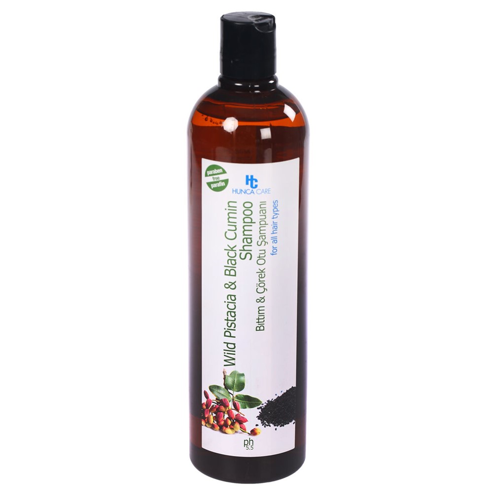 Hunca Care shampoo, with wild pistacia and black cumin extract, with a pH level of 5.5. It moisturizes and gives brightness to the hair. The pistacia extract provides the necessary blood circulation on the scalp, stimulates hair growth and nourishes the scalp.