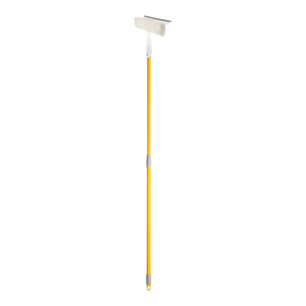Window cleaning system with microfiber cloth, rubber and telescopic handle. Thanks to the extendable handle, it reaches high windows. Head with ergonomic grip that can be used separately. Easy to remove, the napkin is also machine washable. Window cleaning has never been so easy.