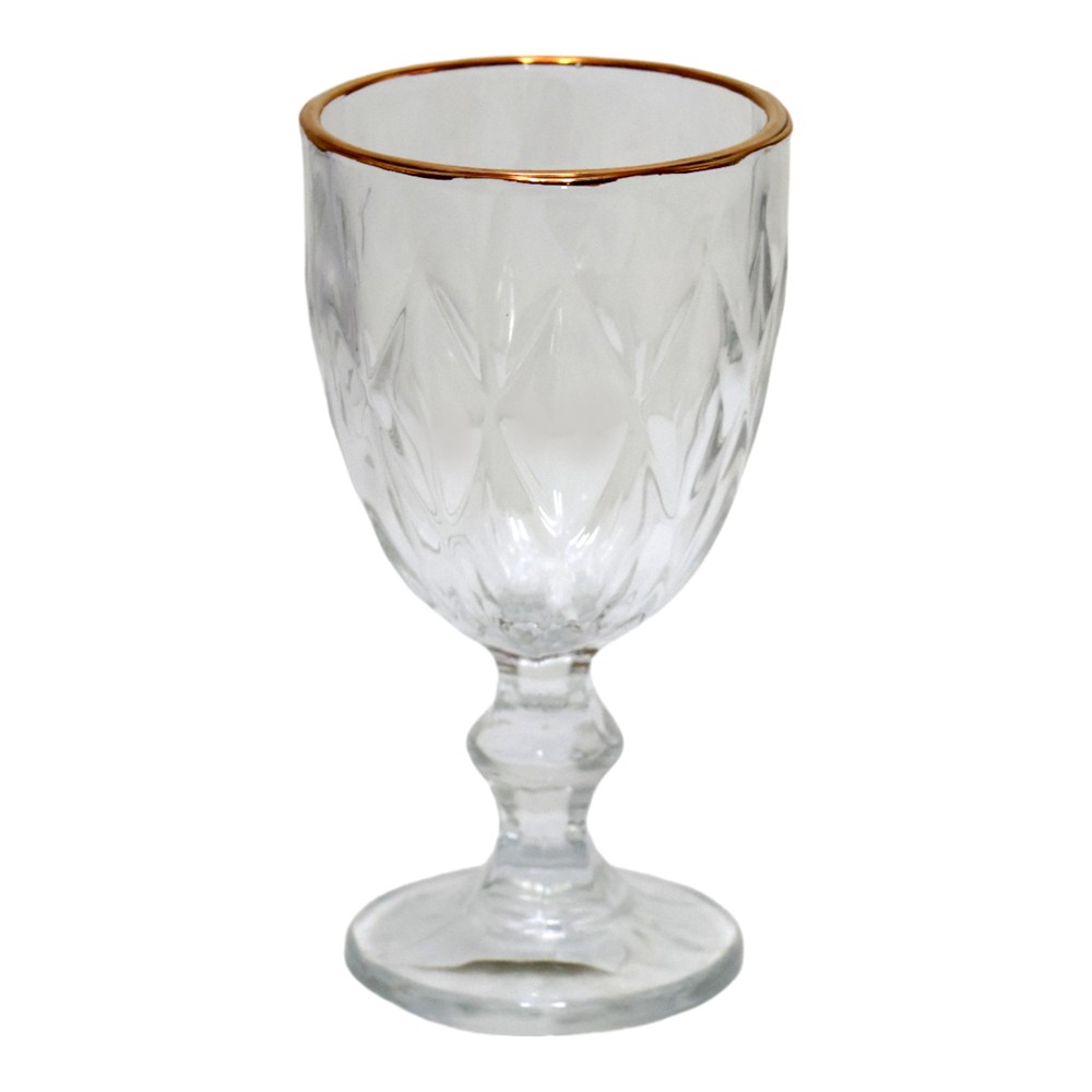 You're reviewing:Wine glass (pk 6), glass, transparent/gold border, 8x15 cm
