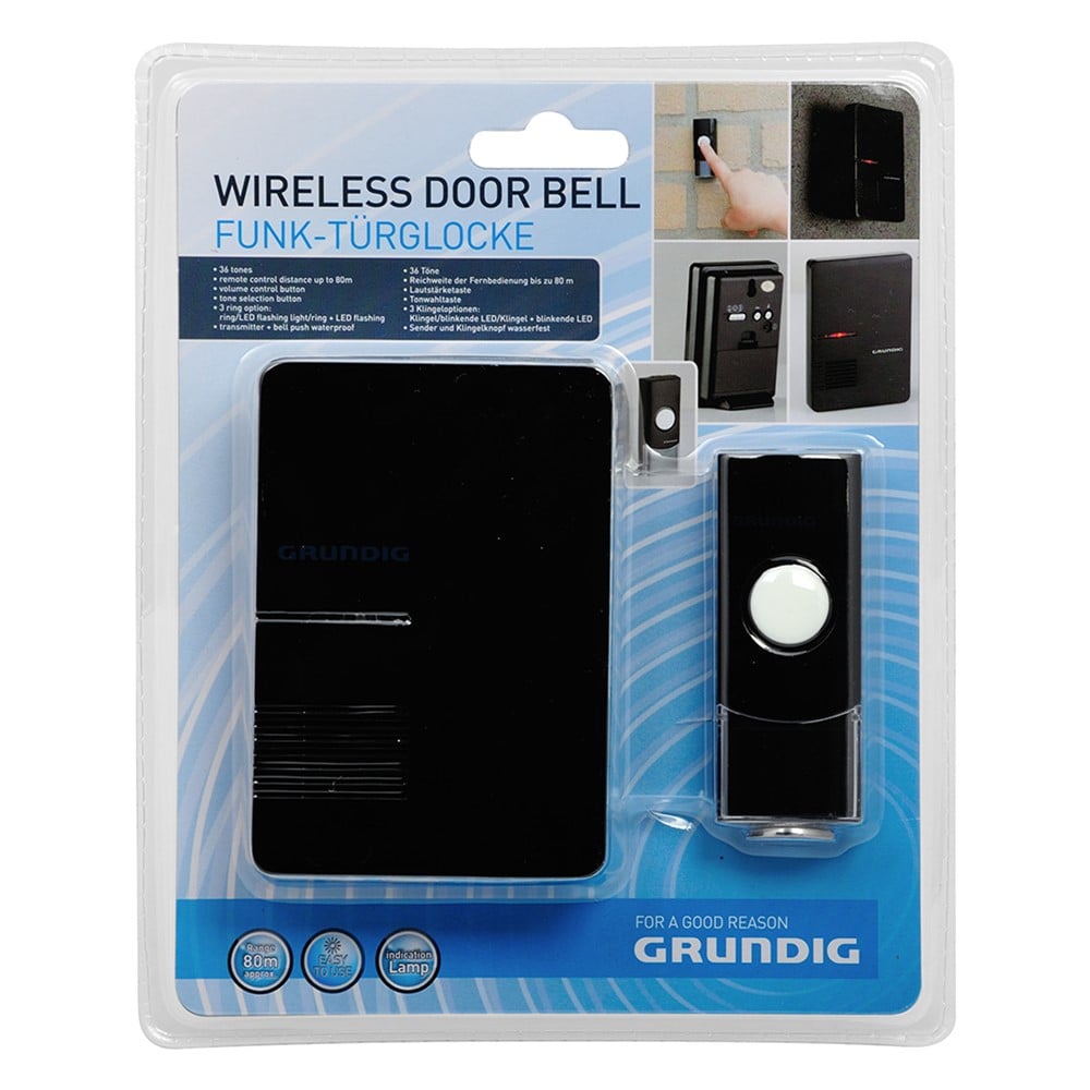 The wireless Grundig LED doorbell with 1 receiver has a total of 36 melodies pre-programmed. A maximum range of 80 meters, a volume control knob and a tone selection knob.