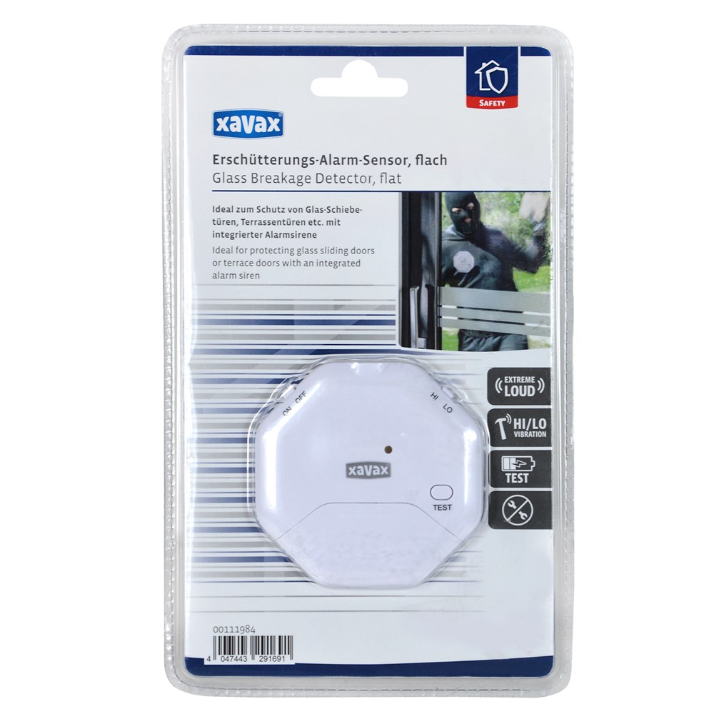 Xavax 111984 is a sensor to detect glass breaking. It provides maximum reliability and ignores any other sound/noisy but glass breaking, since it alerts when a detected sound matches one of the variety glass breaking sound images recorded in its memory. F