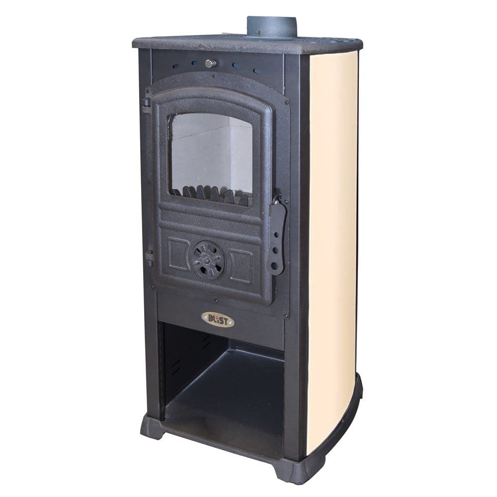 BLIST solid fuel stoves are designed in a way to enable efficient combustion of solid fuels with the possibility of adjusting and regulating the amount of input air required for the combustion process. The stove consists of parts from steel, with doors and top plate made of cast iron or steel (depending on the model of the stove), and the grate in the combustion chamber made of cast iron. All stoves are plated inside with schamotte bricks, which provides long-term heat accumulation. The stoves are painted with special heat resistant paint. The glass on the door is the first class heat resistant ceramic glass.The stoves are designed for space heating of a wide spectrum such as living rooms, offices, restaurants, schools, garages, warehouses, etc.The glass must not be cleaned with wet cloth nor sprinkled with water when is hot. Otherwise, the glass may crack. Very cold objects should not be placed on the top plate when is hot. Otherwise the top plate may crack. Do not use alcohol, petrol or any other liquid fuel. Some parts of the stove can reach very high temperatures during operation the stove,thus it is required adequate precaution while using the stove. Do not allow children to handle and play near the stove.
