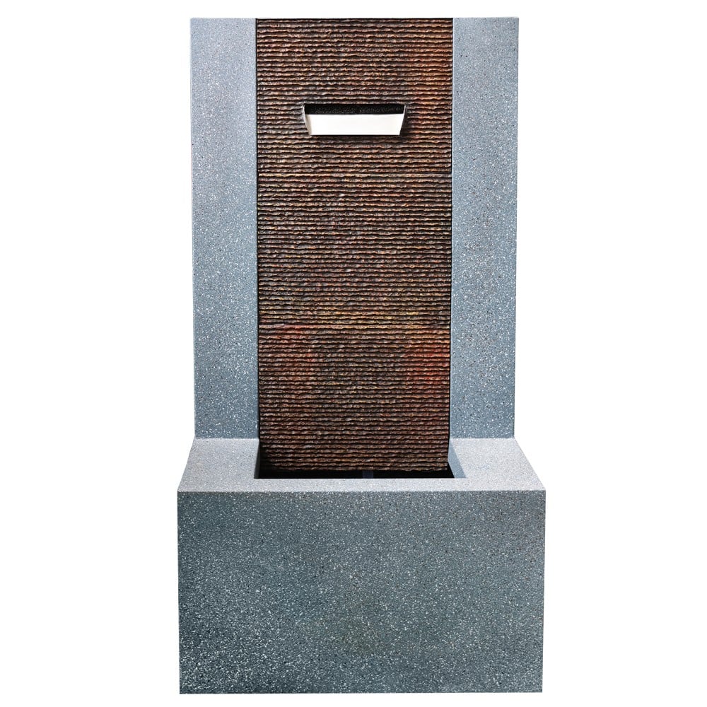 ZINC & POLYRESIN FOUNTAIN, rectangle, W/Strip LED with water pump 10m cable. Product size: 45x26x91cm. They have the appearance of natural stone. To add a relaxing and beautiful element to your surroundings and to bring nature near you, this fountain is the solution. They can be placed inside or outside.