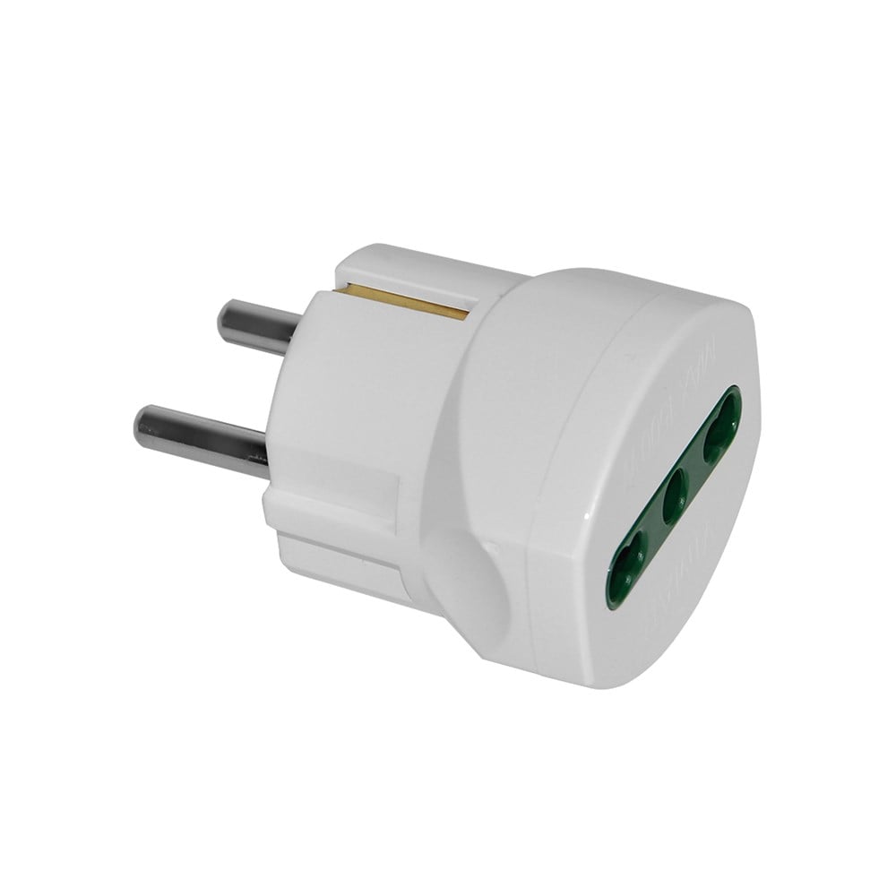 Adaptor, 16A, shuko, në bivalent, (e bardhë), bakër, veshje plastike
