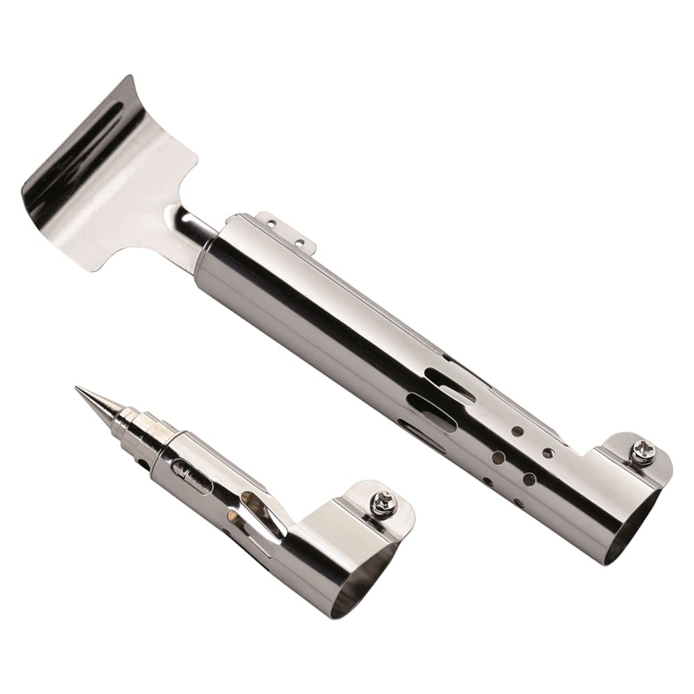 Set i dy aksesorëve zëvendësues të përbërë nga mburojë dhe majë katalitike. Ideale për saldim preciz me kallaj dhe për tkurrje nga nxehtësia.Mund të përdoret në mikrosaldatorin kod ( 607688 ).