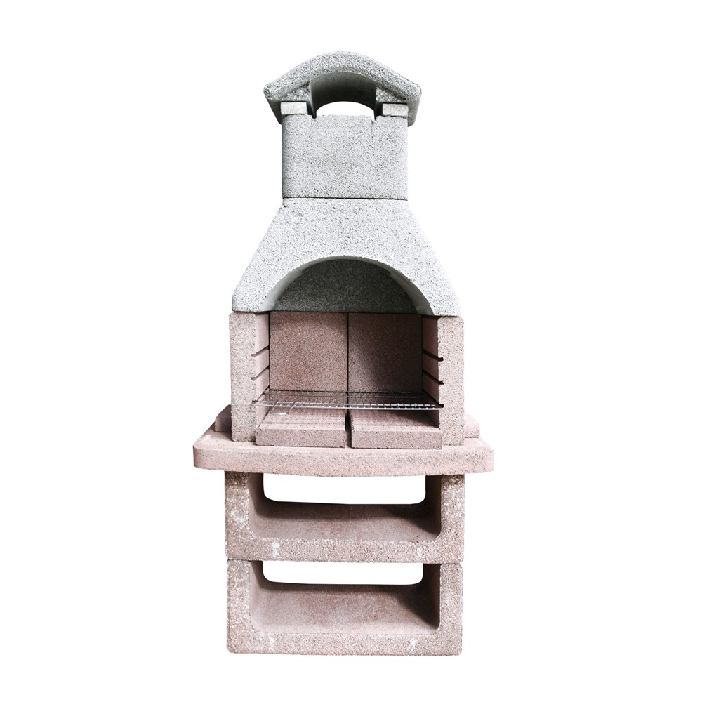 E ndërtuar prej betoni dhe e trajtur me solucion zjarrdurues. E pajisur me 3 pozicione lartësie për të vendosur zgarën e inoksit 45x33 cm për pjekje. E projektuar me hapësire për të pozicionuar aksesorë të ndryshëm barbekjuje. Nevojitet montim.