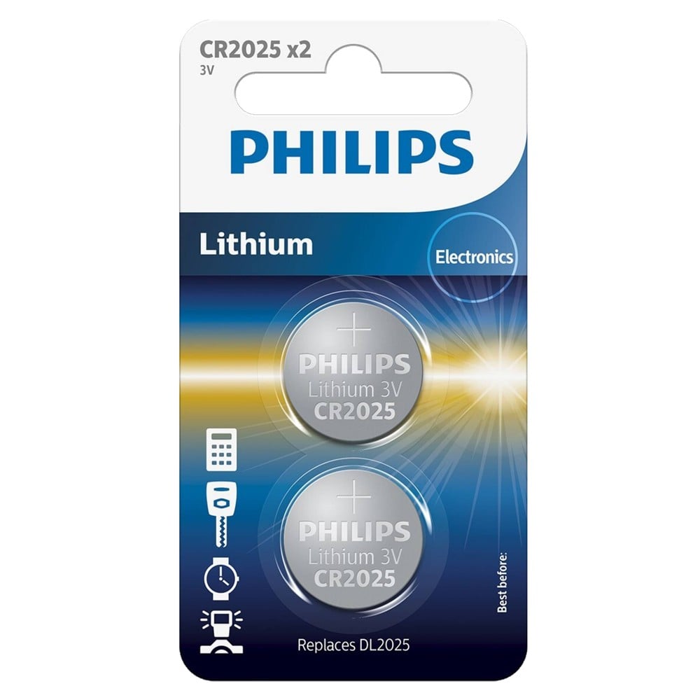 Bateri, Philips, CR2025, Lithium, 3 V, 2 cop/pako