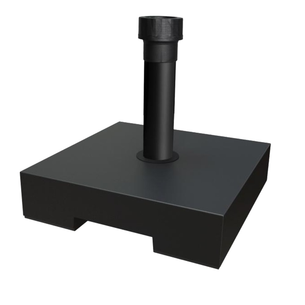 Bazamenti është i bërë me mbushje betoni të llojit të fortë, që i jep atij rezistencë dhe stabilitet të mjaftueshëm për të qëndruar në vend edhe në kushte të vështira të motit. Ngjyra e tij është e zezë, e cila shkon me shumicën e dizajneve të çadrave të ambientit.