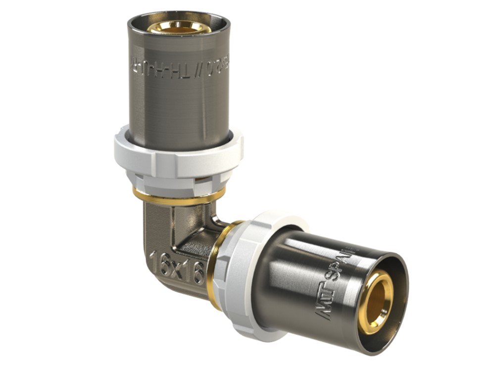 Bërryl 90 ° për multistrat, me presim, DN 16, bronz perdoret gjeresisht per instalimet me tub multistrat,perdoret kryesisht ne sistemet per uje te pijshem por dhe per sistemet e kaldajave dhe ujerave sanitare.