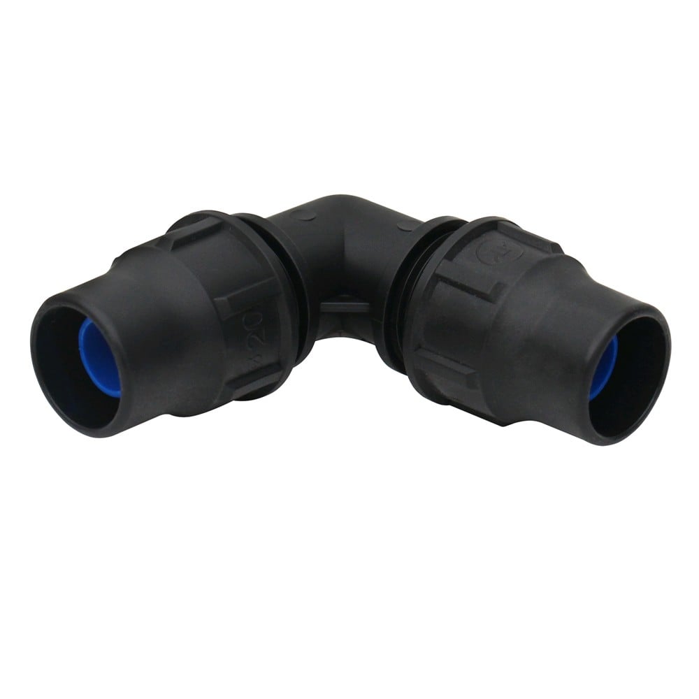 Bërryl me rakord 20X20 mm, prej PE me kënd 90°. përdoret gjërësisht sot në Europe për instalimet këndore të linjave ujësjellëse, vaditjet në bujqësi etj. Bërryli bën te mundur kthimin e rrjetit në kënd 90°. Bërryli bashkon dy tuba të rrjetit me anë të shtrengimit mekanik me rakord. I prodhuar me standarte Europiane, rezistent ndaj lëndëve gërryese dhe projektuar për t'i bërë ballë presionit deri në 6 Bar.