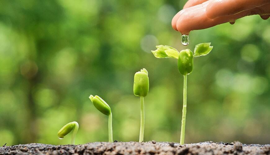Gjatë fazës së filizit dhe rritjes së parë, çdo bimë ka nevojë për më shumë ushqyerje se zakonisht. Farat fillimisht do ti mbjellim në vazo shumë të vogla (vazo për kubikë), deri sa filizi të jetë në gjendje të transportohet, të mbillet dhe të rritet në vazon e madhe apo në tokë. Mbush mini vazot me mjaftueshëm dhe, vendoseni farën pak nën sipërfaqe (sa të mbulohet) dhe prisni me durim shpërthimin e sythit të parë. Gjatë gjithë kësaj periudhe ushqimi i humusit është i mjaftueshëm, prandaj nuk ka nevojë për ushqyes shtesë, por duhet të keni kujdes që të siguroheni që dheu në të cilin qëndron fara të jetë gjithmonë i njomë me ujë. Mund të përdorësh etiketa të vogla prej bambuje për të shënuar bimët dhe për të mos ti ngatërruar ato.