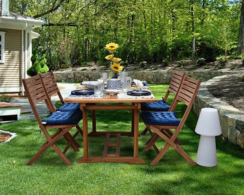 Hapësirat e mëdha të kopshtit apo oborrit kërkojnë një investim më të mirëmenduar për sa i përket setit të jashtëm të cilin ti dëshiron të përdorësh. Duke harruar për një moment dizajnin estetik të këndit tënd të ardhshëm në kopësht, duhet të mendosh gjatë për materialin e përdorur në arredim. Duke qenë se seti qëndron në çdo kohë dhe mot jashtë, duhet të mendosh për materiale të cilat janë mjaft rezistente ndaj kushteve atmosferike; lagështirës, shiut, diellit dhe pse jo, dëborës.