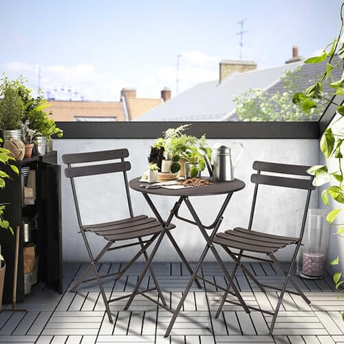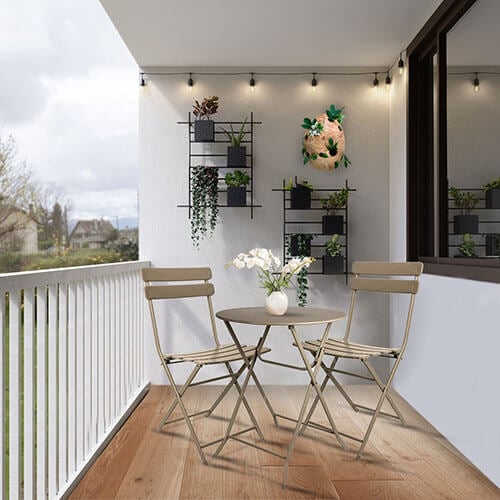Edhe nëse nuk ke një kopësht apo oborr të madh në shtëpi, mund të punosh shumë lehtë dhe me hapësirat e vogla të ballkonit për të krijuar një kënd të rehatshëm në ajër të pastër. Nëse për kopshtin, vendimi më i rëndësishëm është ai i materialit dhe dizajnit, në ballkon duhet të mendosh dhe për prakticitetin dhe zënien e hapësirës. Zgjedhja e zgjuar në këtë rast do të ishin karriget dhe tavolinat e palosshme. Ato jo vetëm kursejnë hapësira, por edhe janë ndërtuar nga materiale të qëndrueshme për qëndrime të gjata në ballkon.