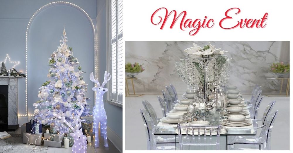 Një tematikë elegante dhe plot finesë për njerëzit që duan të bardhën, “Magic Event” frymëzohet nga mbrëmjet e bardha dimërore dhe materialet cilësore të përzgjedhura për të dekoruar këtë fundvit një ambient plot shije, gati për të festuar eventet më të rëndësishme për ty! E bardha mbetet gjithmonë një “tendencë pa kohë”, e cila preferohet si për dekorin, për pemën ashtu dhe për detajet e tjera festive, për një pamje bashkëkohore e mjaft “chic”. Nuancat e së bardhës theksohen këndshëm nga materialet transparente e plot shkëlqim, duke imituar këndshëm ambientin e ftohtë jashtë.