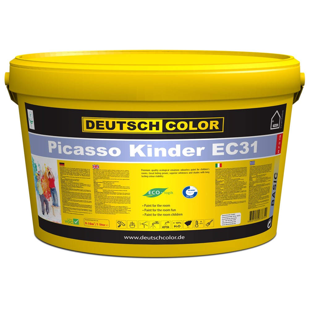 Picasso Kinder është bojë ekologjike plastike me cilësi të shkëlqyer për lyerjen e dhomave të fëmijëve (përdorim të brendshëm). Ajo paraqet mbulueshmëri të mirë, bardhësi dhe jetëgjatësi të ngjyrave të aplikuara. Picasso Kinder nuk ka aroma gjatë aplikimit dhe është një produkt tërësisht ekologjik .