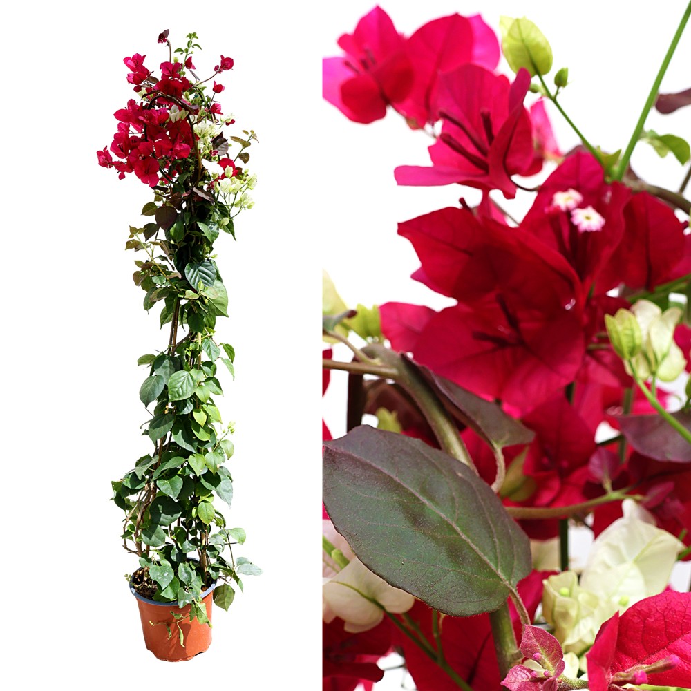 Bougainvillea është një bimë me gjelbërim të përhershëm me ngjyra të dukshme dhe spektakolare. Lulet vijnë në një gamë të madhe ngjyrash duke përfshirë vjollcën, vjollcën, rozën, kajsinë, të kuqe, të verdhë dhe të bardhë. Ato janë në fakt të mëdha të holla letre që rrethojnë një grup qendror lulesh të vërteta, të cilat janë me ngjyrë të vogël dhe të bardhë. Kushtet e rritjes pa ngrica janë thelbësore për bougainvillea. Ato mund të prodhojnë lulëzime të përsëritura për shumë muaj nëse kushtet janë të përshtatshme. Bougainvilleas shiten shpesh si bimë shtëpie, zakonisht të kapura rreth një rrethi teli ose në një kornizë, por ato mund të rriten edhe si një shkurre, lart një mur ose mbi një hark. Nga natyra, ato kanë nevojë për shumë hapësirë për tu rritur dhe mund të arrijnë lehtësisht dy metra lartësi. Varietetet kompakte të bougainvillea janë në dispozicion ato rriten deri në një metër të lartë dhe funksionojnë mirë si shkurre ose mund të mbillen edhe në një shportë të varur.