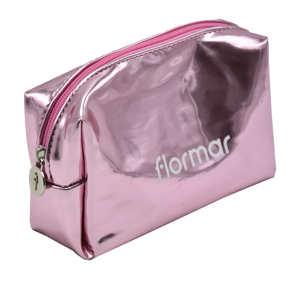 Çantë kozmetike, prej materiali poliuretani, në ngjyrë rozë me shkëlqim. Përdoret për mbajtjen e produkteve të ndryshme kozmetike dhe aksesorëve të makeup-it. Ky produkt është i përshtatshëm për t'u marrë me vete në udhëtime, falë përmasave të vogla.