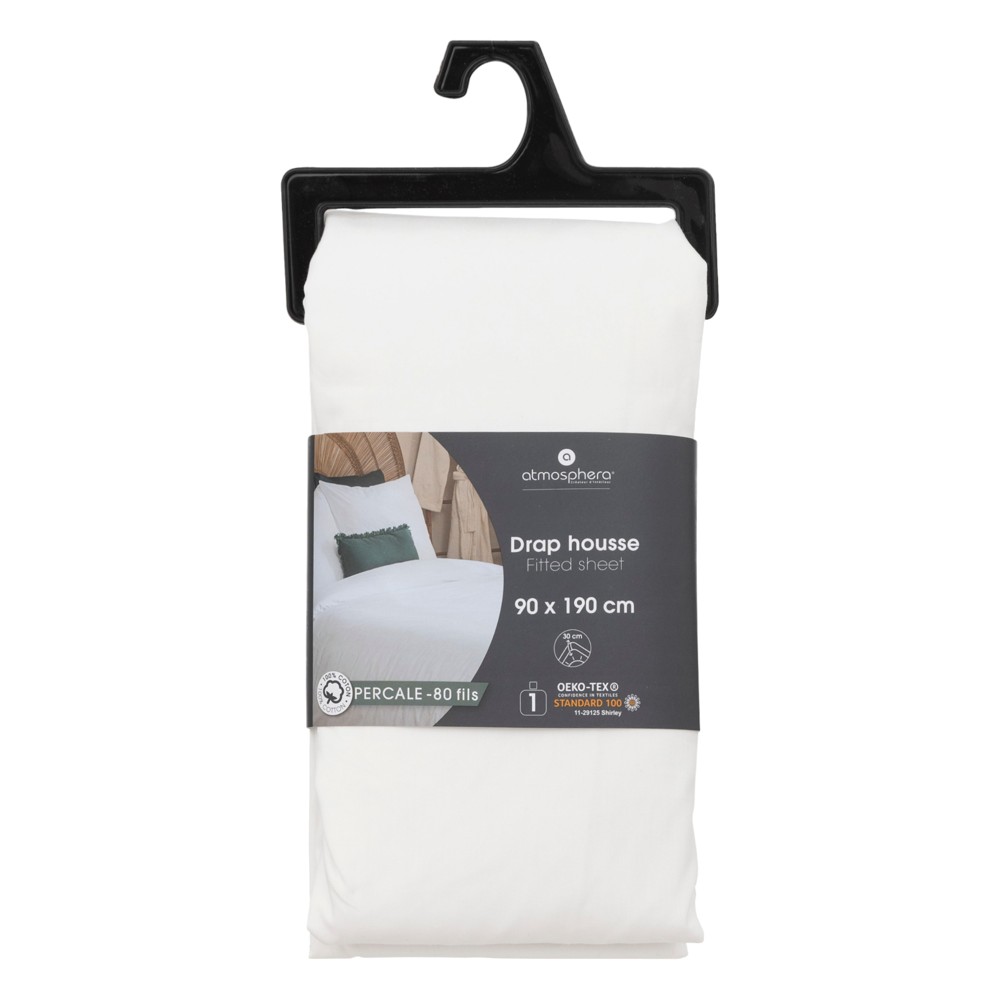 Çarçaf dysheku tek, Landiha, pambuk, e bardhë, 90x190 cm