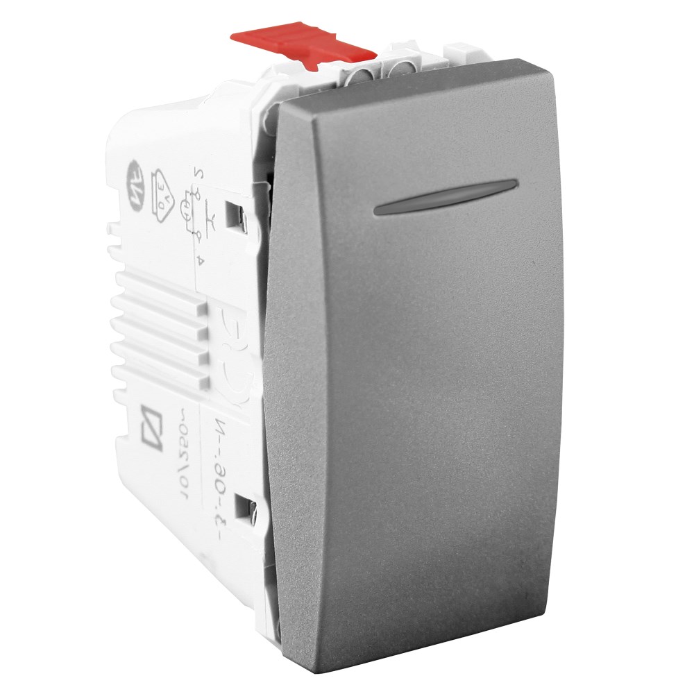 Po vlerësoni:Celes pulsant 10A me komandim automatik e alumin me simbol llampe blu