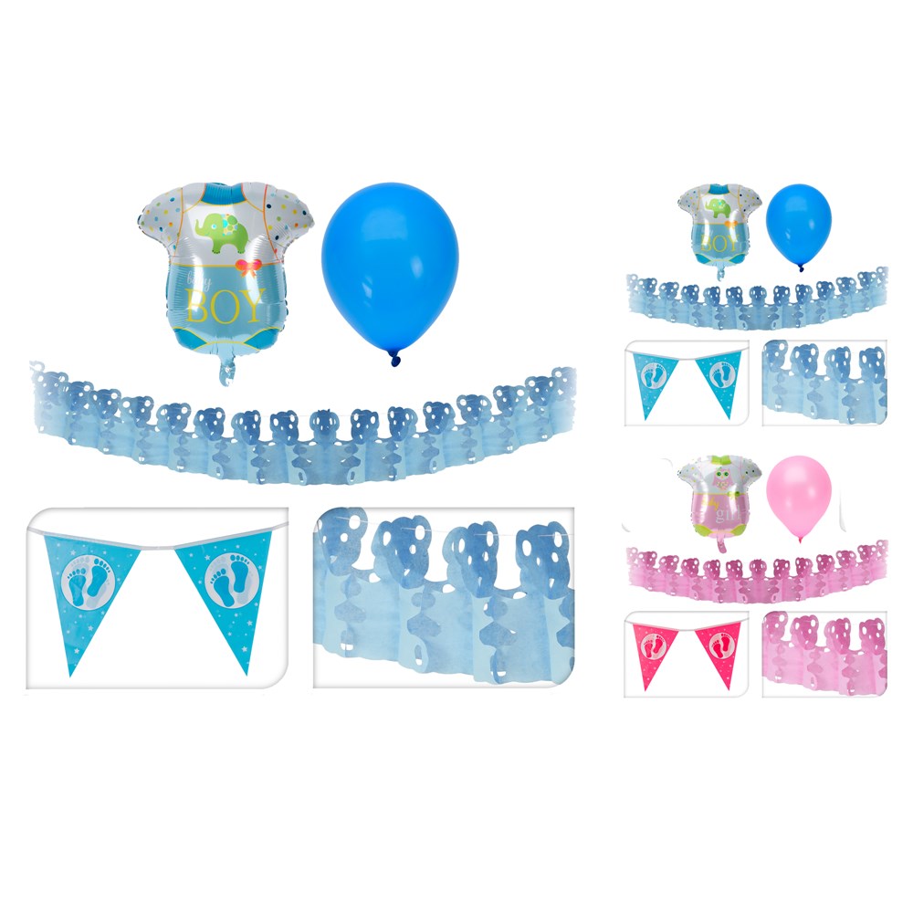 Dekorime festive, "Party", baby shower, karton, blu-roz, 22x2x33 cm, 5 copë, 1 pako