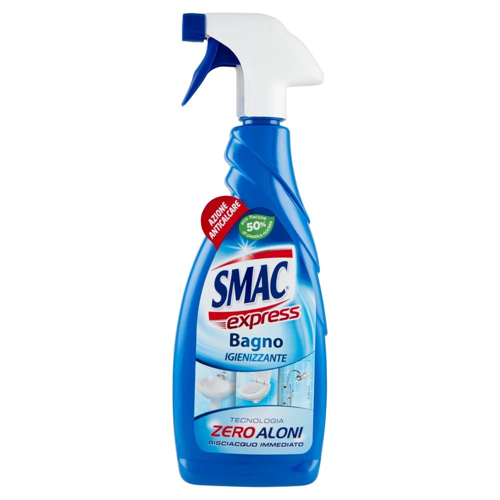 Smac Express Bagno, falë formulës së re të përmirësuar, largon lehtësisht papastërtitë e forta dhe gëlqeres nga të gjitha sipërfaqet e banjës. Formula Smac Express Bagno me agjent antibakterial dezinfekton tërësisht dhe shpëlahet lehtë, duke i lënë sipërfaqet të pastra dhe me shkëlqim për një kohë të gjatë.