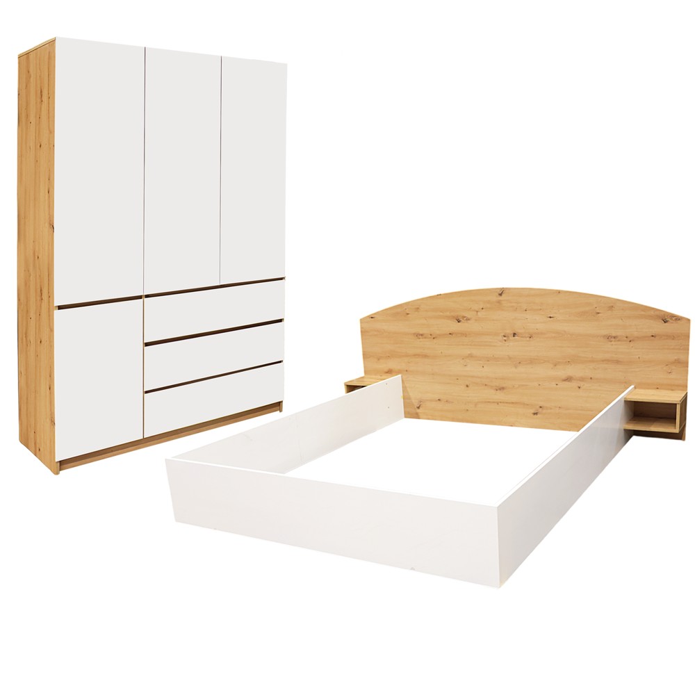 Dhomë gjumi, Lea, melaminë, e bardhë/artizan, 120x52xH197 cm; 223.4x200xH72 cm (160x200 cm)